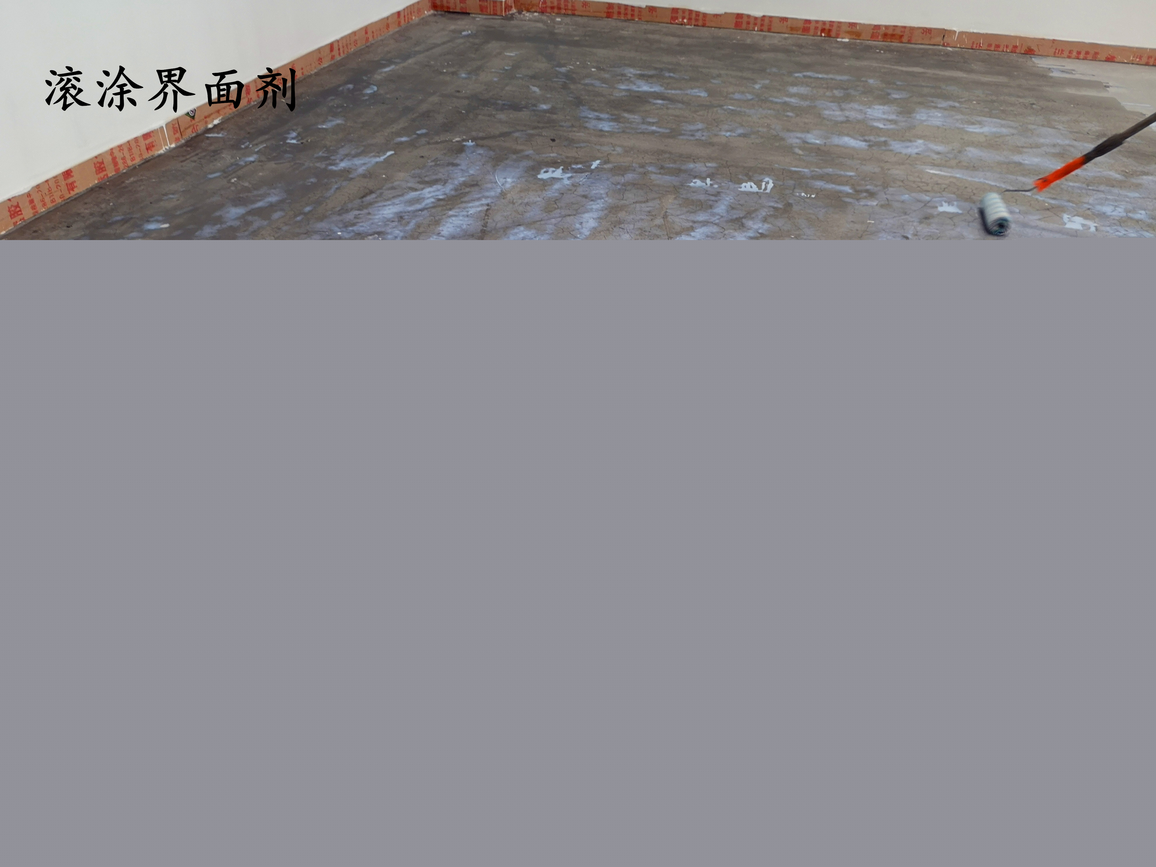 4、基層處理完成后,用羊毛滾筒將界面劑均勻涂刷到基層表面,建議滾涂?jī)杀椤T谝煌砍释该魃盎旧细珊?,進(jìn)行二涂,界面劑必須與基面充分接觸,使界面劑起到浸封基層的效果,在界面劑二涂呈透明層后,方可進(jìn)行自流平施工。確保界面劑涂刷均勻,并完全封閉基面。